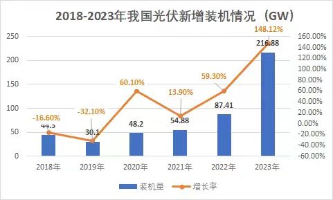 裝機(jī)量再度刷新!光伏市場持續(xù)火熱! 1月26日,國家能源局發(fā)布2023年全國電力工業(yè)統(tǒng)計數(shù)據(jù)。2023年1~12月光伏新增裝機(jī)216.88GW,同比增長148.12%。 去年,對于光伏行業(yè)來講是爆發(fā)式增